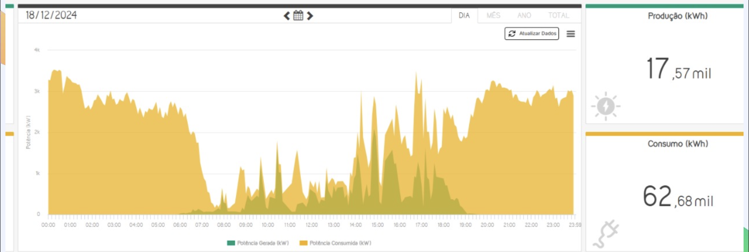 Case com Medidor Grid Zero da SolarView: A unidade consumidora migrou para o mercado livre. O Grid Zero limita a geração de energia (verde) de acordo com o consumo (amarelo) para que não haja injeção de energia na rede. Leia o case completo aqui: SolarView ajuda Cooperativa Gaúcha de Leite a gerar mais de 300 mil reais em economia mensal
