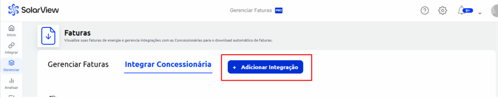 1. Acesse Menu >> Faturas >> Integrar concessionária;