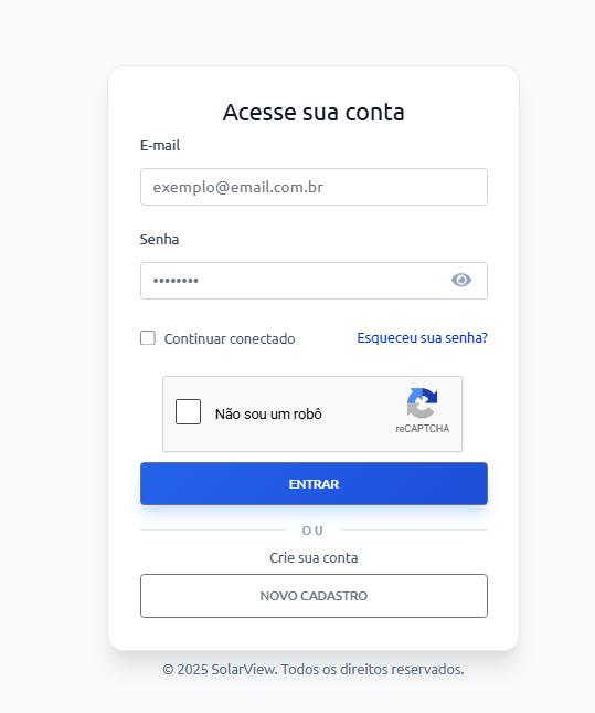 2.1 Acesse a página de login SOLARVIEW e insira e-mail e senha.