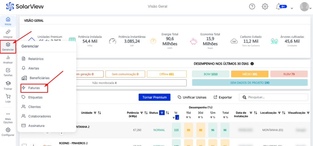 - Como gerar um Relatório da Usina com a Fatura para grupo A - Autoconsumo Remoto na SolarView PRO?