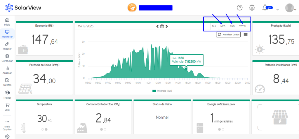 OBS: A atualização de dados são para usinas de integração digital com portal de monitoramento de inversores