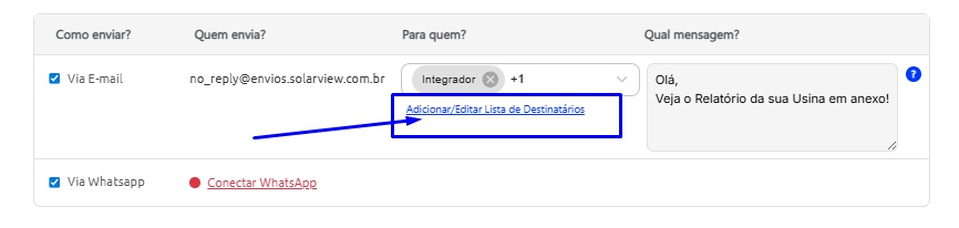 - Selecione as usinas que você deseja gerar e enviar o relatório.