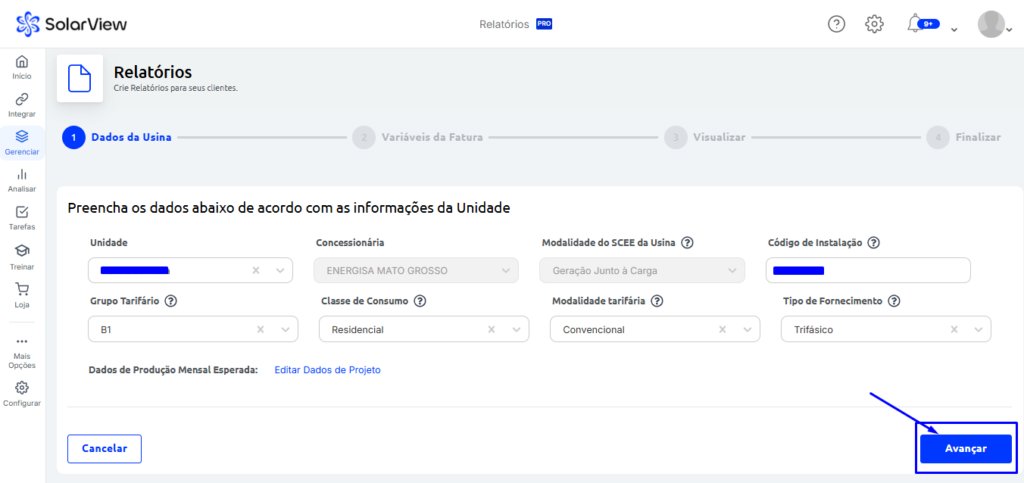 - Como gerar um Relatório da Usina com a Fatura para grupo A - Autoconsumo Remoto na SolarView PRO?
