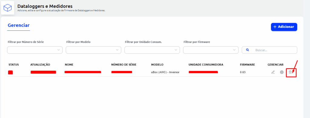 Após a exclusão, caso queira adicionar o datalogger em uma nova unidade, Clique AQUI