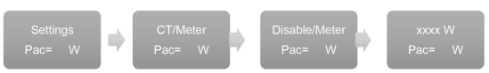3- Após habilitar o medidor, pressione a tecla por 1s para aumentar o valor de potência em +1. Se a potência desejada for “0W”, deixe o valor como zero para que a função grid zero ocorra. Confirme o ajuste pressionando e segurando a tecla por 3s.