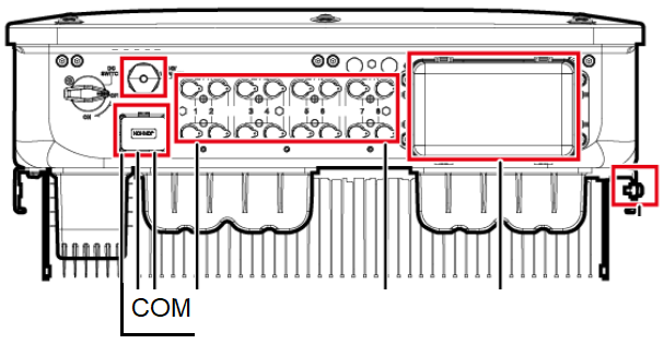 3- Na face inferior do inversor abra a porta “COM”.