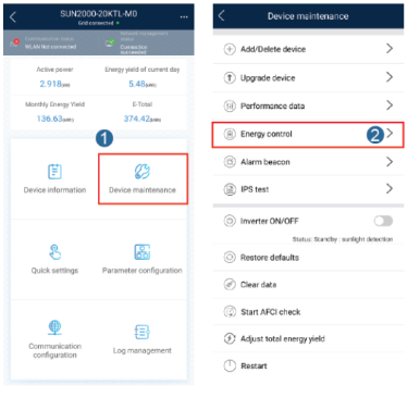 3- Nas configurações de controle ativo de potência , selecione o modo de controle e se necessário a potência a ser exportada.