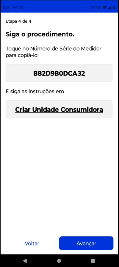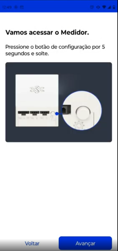 -Em seguida, pressione o botão de configuração do medidor até a luz de led ficar azul;