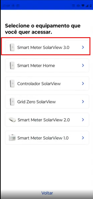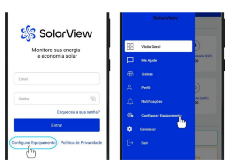 Acesse o aplicativo SolarView (baixe na google play ou app store);