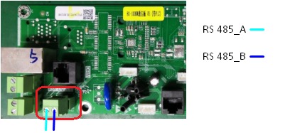2- Conecte os cabos da porta RS485 do Grid Zero na porta “Meter Port” da placa de comunicação. O cabo azul/branco na porta A e o cabo azul na porta B, seguindo a indicação da placa de comunicação do inversor.