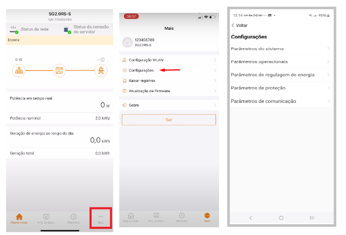 4- Acesse a opção “Operation parameters/Parâmetros de Operação”