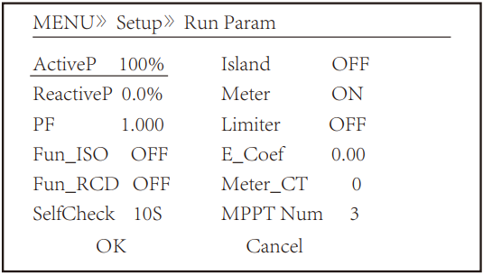 2- Selecione [Running Parameters] dentro das opções de Setup