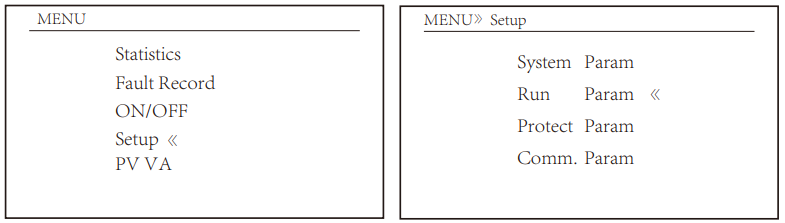1- Pressione o botão Enter no painel LCD e entre no Setup.