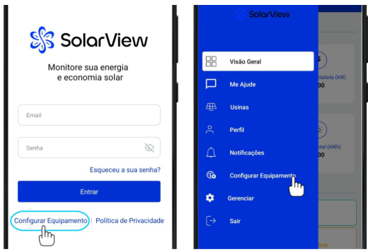 (Atenção: Certifique-se de estar utilizando a versão mais recente do aplicativo da SolarView. Se estiver utilizando sistema IOS, baixe o app “SolarView 2.0” se estiver no Android, baixe o app “SolarView”)