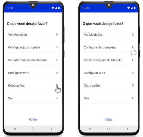 2- Abra o aplicativo. No final da tela de login clique em “Configurar Medidor”. Caso tenha feito o login, abra o menu lateral e clique em “Configurar Medidor”.