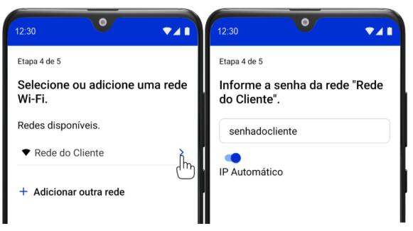 9-Caso tenha feito a configuração completa, realize a conexão do medidor a rede do local. Selecione a rede local e insira a senha do wifi.