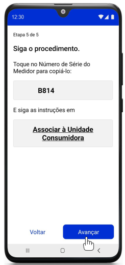 6- Selecione a serial do medidor desejado na tela de medidores próximos