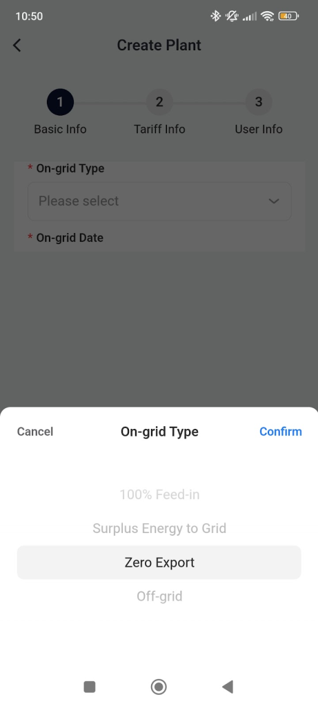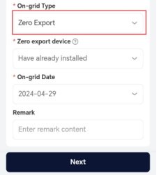 2- Selecione On-grid Type e após abrir a lista de opções selecione Zero-Export.