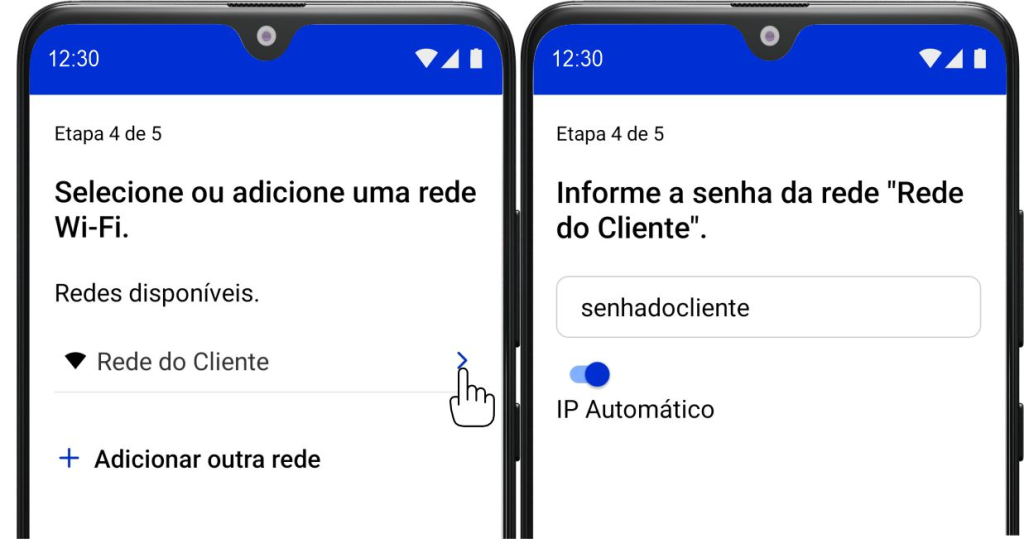 10- Caso tenha feito a configuração completa, realize a conexão do medidor a rede do local. Selecione a rede local e insira a senha do wifi.