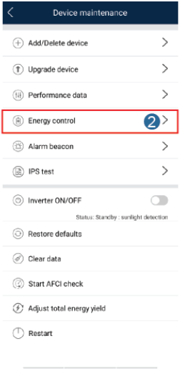 3- Nas configurações de controle ativo de potência selecione o modo de controle e se necessário a potência a ser exportada.