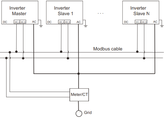 Obs: A  configuração e escolha do medidor mestre será feita no inversor que apresenta a conexão do medidor em sua porta de comunicação.