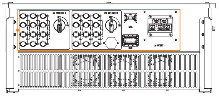 2- Desligue o lado CA depois o lado CC e aguarde 5 minutos até os capacitores descarregarem, para ter segurança ao manusear o inversor.
