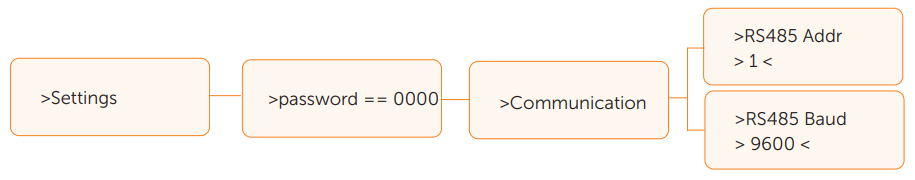 2- Acesse a opção “RS485CommAddress” e configure o endereço de comunicação para 01 e RS485 Baud para 9600.