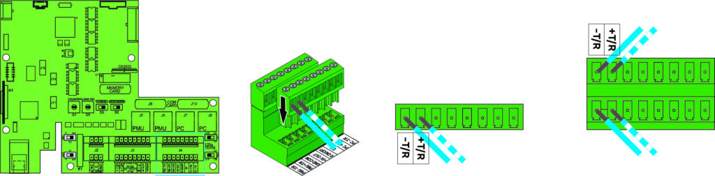 5- Para Inversores ABB TRIO-20.0-TL-OUTD e ABB TRIO 27.6-TL-OUTD a crimpagem do conector de comunicação será conforme a imagem a seguir: