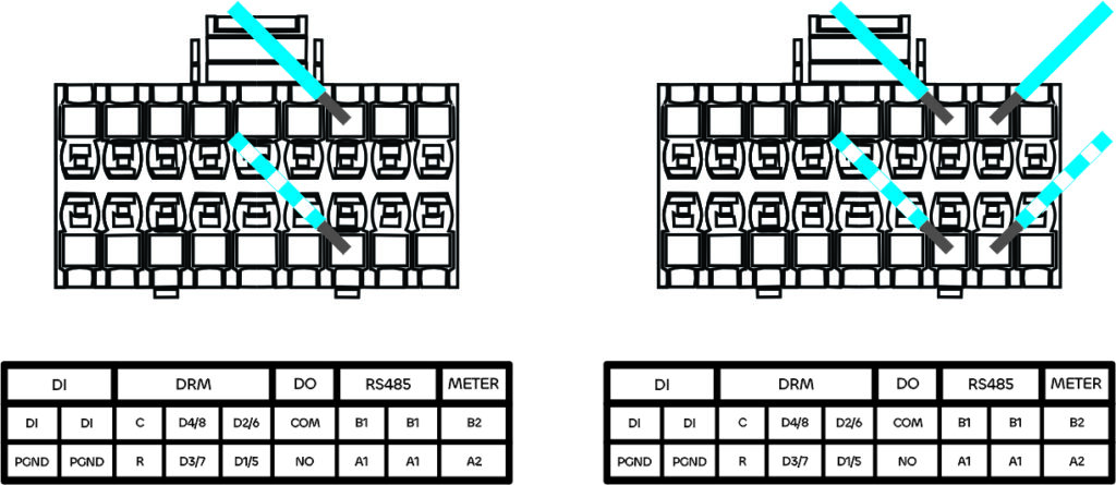 6.1 Para comunicação com um único inversor, a imagem à esquerda exemplifica a crimpagem. Para uma conexão com multi inversor, a imagem à direita exemplifica a conexão.