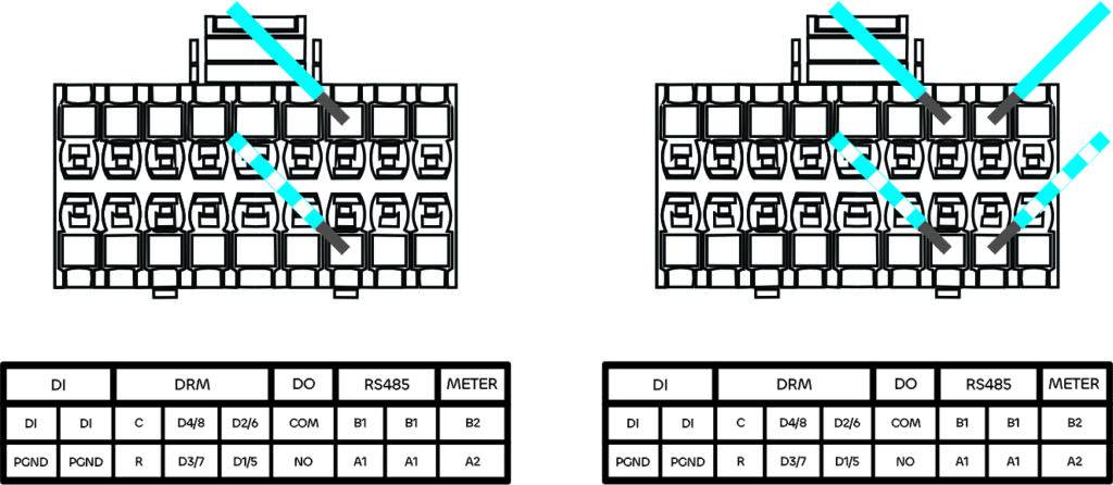 7- Para Inversores SG15CX-P2-LV / SG20CX-P2-LV / SG25CX-P2-LV, a crimpagem do conector de comunicação será conforme a imagem a seguir: